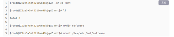 5. 掛載前需要創建掛載點,就是一個文件夾,然后使用命令mount把磁盤掛載到這個文件夾中